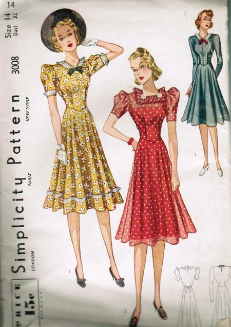 Simplicity 3124 1930s Misses Street Dress Size 32 Bust Vintage Sewing Vintage4me2
